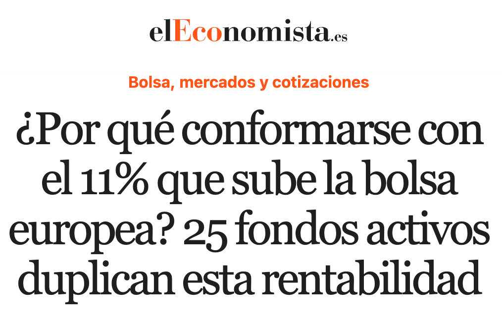 El fondo Pareturn GVC Gaesco Columbus European Equity ha sido destacado por El Economista como uno de los 25 fondos activos que duplican la rentabilidad de la bolsa europea en 2025.